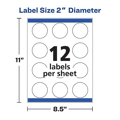 Easily customize your printable round sticker labels with free templates and designs at avery.com/templates; label sheets are compatible with laser and inkjet printers