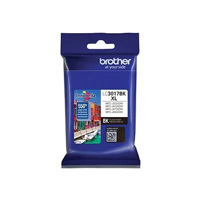 Get your daily printer needs covered by using the Brother Genuine LC3017 black high-yield ink cartridge. With a yield of up to 550 pages*, this cartridge is ideal for small offices, classrooms or homes. This Brother high-yield black ink cartridge is made to work seamlessly with select Brother inkjet printers and features a Brother Genuine black ink formula for crisp, striking prints that produce clear surveys, training guides and other documents. The Brother LC-3017BK is for use with Brother inkjet printers: MFC-J5330DW, MFC-J6530DW, MFC-J6730DW, and MFC-J6930DW.