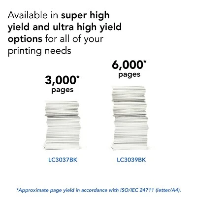 Brother LC3037BKS delivers convenience and consistent print quality with up to 3,000-page yield.*