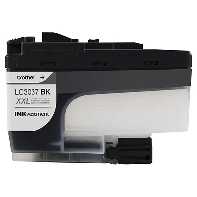 Brother Genuine LC3037BK Single Pack Super High-yield Black INKvestment Tank Cartridges deliver consistent, professional print quality and ultra convenience with an up to 3,000-page yield.* Brother Genuine ink is intelligently engineered to work seamlessly with your Brother INKvestment Tank inkjet printer to consistently produce sharp prints that withstand the test of time. Brother Genuine LC3037BK is for use with Brother INKvestment Tank affordable inkjet all-in-one printers MFC-J5845DW, MFC-J5845DW XL, MFC-J5945DW, MFC-J6545DW, MFCJ6545DW XL and MFC-J6945DW with Brother tank technology. Brother offers an environmentally responsible way for customers to dispose of Brother Genuine cartridges at end of life. Visit www.brother-usa.com/environment for more information.