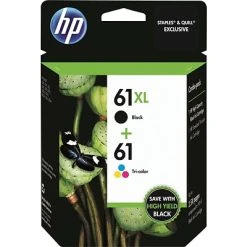 Save money on every page with an Original HP 61 and 61XL black and tri-color 2-pack. Get the quality of Original HP 61 ink on every page with vibrant colors and striking detail. With 2-packs, you can grab everything you need in one trip so you can save time: tri-color ink makes your images pop while rich blacks add color and shade variety to your prints.