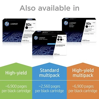 With Original HP 80A cartridges and uniquely formulated HP toner, you get consistent print quality from the first page to the last. The cartridge is designed to produce consistent yields from one cartridge to the next.