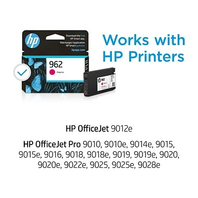 HP 962 magenta original Ink cartridge inks yield high-quality prints. Using HP 962 magenta original Ink cartridge you can count on professional-quality documents. original HP ink cartridges provide impressive reliability for dependable performance, trustable page yields, and durable results. Quickly and reliably print with individual inks and high-yield cartridge options.