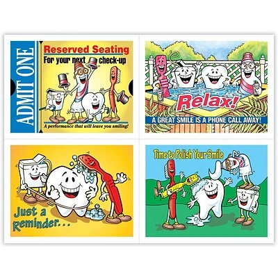 Attention-getting postcard captures your patients attention. The back of the postcard is blank so you can add a personalized message, using your own Laser Printer. Uncoated stock, perforated sheets. Four cards to an 8-1/2″ x 11″ sheet. 100 cards. Detached size: 4-1/4″ x 5-1/2″.